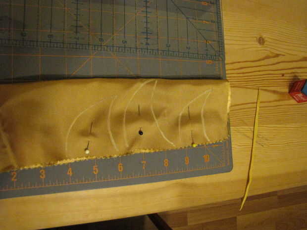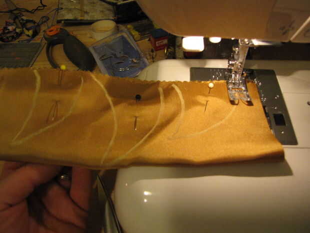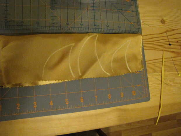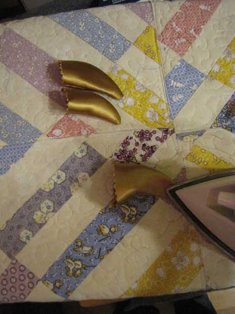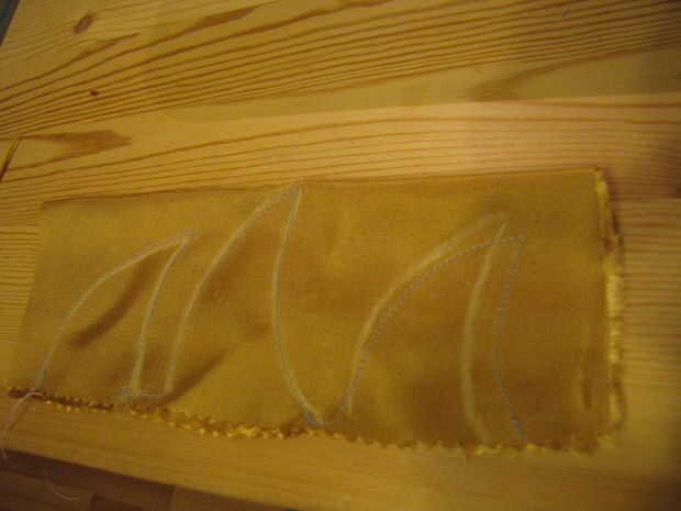 Doblar la tela del dedo del pie medio, brillante y con tiza, traza una forma de uña/uñas de los pies. PIN, entonces bajo la costura de la máquina y cose un dedo del pie a la vez, une los tres dedos del pie juntos. Esto ahorra tiempo e hilo de rosca, si no parar entre cada dedo del pie y corte hilo, luego comenzar de nuevo cada vez.