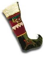 este proyecto comenzó como una forma de usar algunos retazos de tela que había guardado lejos. Muchas de las medias de Navidad que ves para la venta son modernos en apariencia y a menudo algo insípido, así que decidí hacer uno con una sensación más rica, más antigua y una punta encorvada como un guiño a la tradición que San Nicolás vino originalmente de un área de Grecia que es ahora parte de Turquía. En una versión del cuento, había tres chicas que eran demasiado pobres para tener una dote para contraer matrimonio, y San Nicolás arrojó bolsas de oro a través de la ventana de su casa, donde aterrizaron en los zapatos y las medias que eran de sequía junto a la chimenea. En otra versión, no era monedas de oro pero bolas de oro que fueron lanzados en, y por ello el emblema de San Nicolás es bolas de oro o naranjas y la razón por qué tradicionalmente hay una naranja en la media de la Navidad!