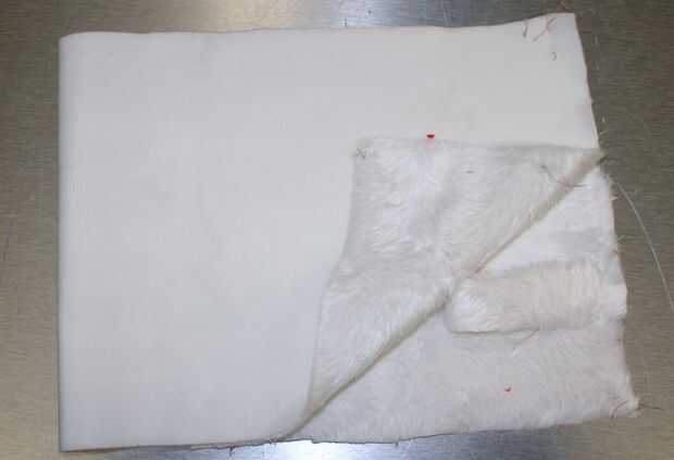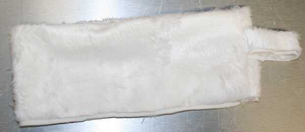 • Doble a muñequera tela en medio para que coincidan con los extremos cortos