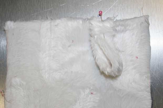 • Ficha de caída en la mitad longitudinalmente y pin a un borde de tejido de pun ¢ o del doblez