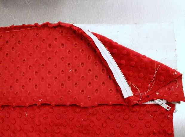 • Otra vez, emparedado de la cremallera entre las dos telas