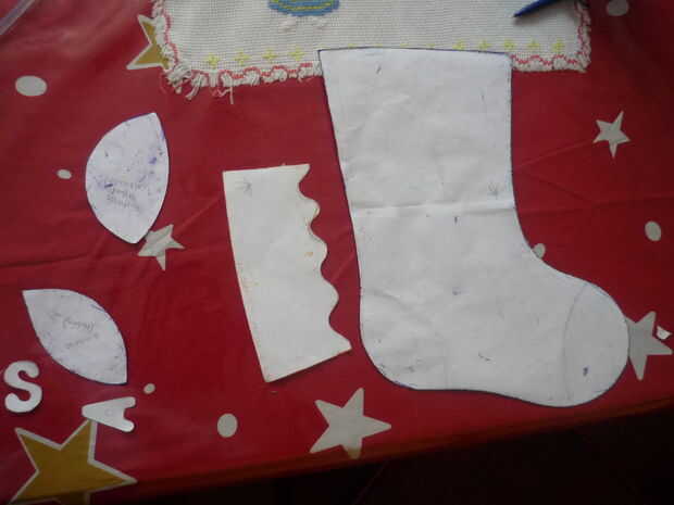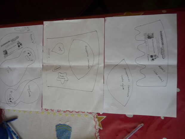 No es difícil hacer un patrón. Todo lo que necesitas es dibujar tu diseño en una hoja de papel (tamaño real) y luego, en un papel diferente, copie las partes que van con una tela diferente (el talón, los dedos de los pies, etc.) Elegí una muy simple... puede hacer este u otro...
