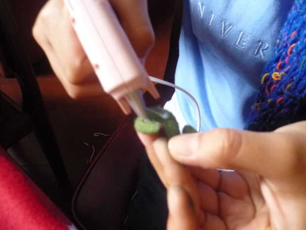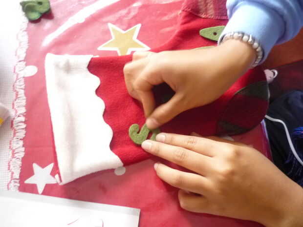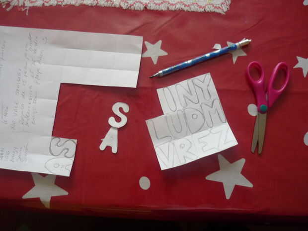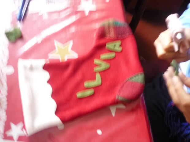Debido a todos los calcetines eran igual, que tenemos que poner cada nombre en él. Primero puede imprimir algunas letras te gusta o simplemente dibujarlas sobre el papel, como yo. Luego cortarlas y usarlas como un patrón. Marcar las letras en el fieltro y cortamos. Luego agregar las letras en el orden de derecho (¡ tenga cuidado!) con la pistola encoladora y que es él! se acabó ;D