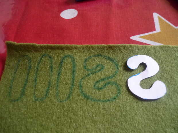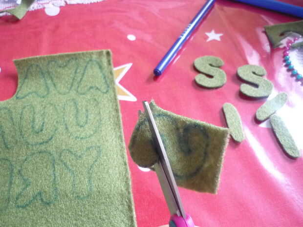 IMPORTANTE: al marcar las letras en fieltro, recuerda poner el patrón en el otro lado por lo que después de marcado y corte se vería como si y no hacia abajo.