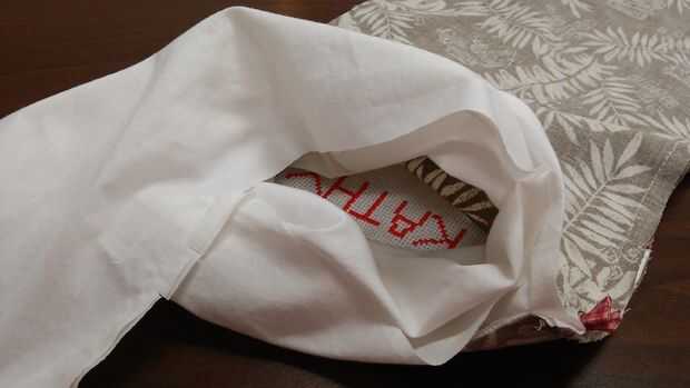 Coloque su mano en la abertura del revestimiento y apoderarse de la zona del dedo del pie de la parte exterior de la media.