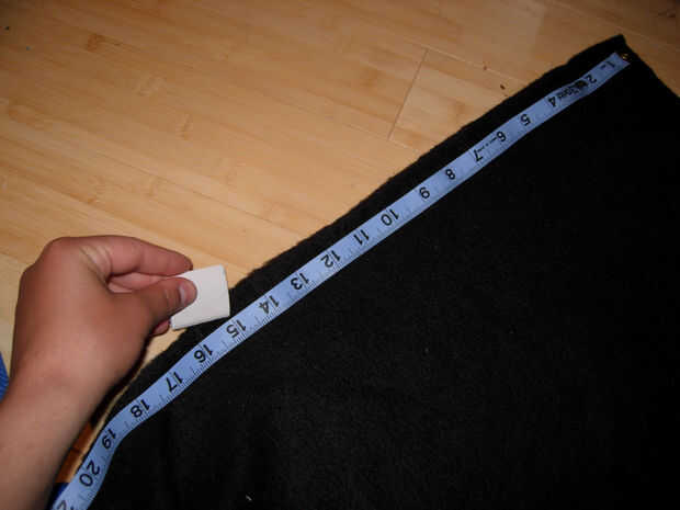 sosteniendo la tiza contra el extremo de la cuerda en una mano, pin el otro extremo de la cuerda a la punta del sombrero con la otra mano. Swing la tiza de la marca de una medición a otra en una línea curva.