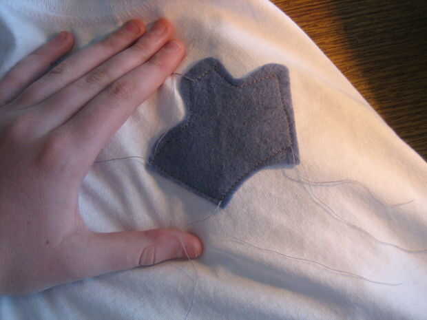 Coser en las secciones de cabeza primero, y luego coser en el centro y ojo ocular. Luego coser las palabras siguiente, pero recuerde que debe utilizar el hilo de color correcto en la bobina y el hilo principal para cuando usted cose todo en. Recuerda de no coser la parte delantera y trasera de la camiseta Junta! De esta manera es manera más rápida que hacerlo todo a mano y a menos que usted está usando una tela muy gruesa (no sugerir), su máquina debe ser capaz de hacer bastante rápido.