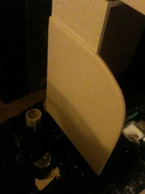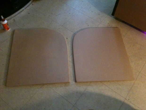 Aquí hacemos las patas de estos servirá como parte del diseño y la función de apoyar la cabina y el peso de la tv estos se pueden hacer de todas maneras te gusta elegí un diseño simple. Lo que hice fue cortado de la madera MDF de 3/4 pulgadas 23 pulgadas de largo por 1 pie 9 pulgadas de largo y corte una curva en ella para hacer un fresco buscando forma luego que intercala con la otra pieza de 3/4 MDF madera - 23 pulgadas largo por 1 pie 9 pulgadas de largo y corte a lo largo del filo, me da que de las mismas piezas forma luego lijadas suave hacia abajo y usar pinzas para esto. Entonces solo pega y taladro una pieza a cada lado de la estantería desde el interior tenga cuidado de no perforar a través de todo el camino.