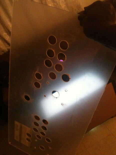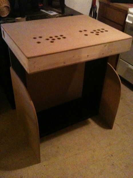 Si has seguido los pasos su cabina sería algo como el de las fotos a continuación. Ahora lo que hacemos es poner el panel de control con la tapa de encima de la base. Asegúrese de que la parte posterior del panel de control quede al ras con la parte posterior de la base e incluso en ambos lados que del panel de control debe colgar sobre una media pulgada en cada side.next viene la obra de arte que hice un cuadro personalizado con photoshop y había impreso en el papel de cartel de alto brillo en el staples por diez dólares este paso también es opcional. Si usted decide utilizar arte trabajo seguro obtendrá una pieza de plexiglás del mismo tamaño que su print.place el plexiglás en el panel de control sobre los agujeros de botón. Asegúrese de que todo es uniforme y dibujar una línea a través de la tapa de plexiglás en el corte de panel.then de control el panel de control en half.we se vuelva a conectar los dos half.with un later.next de la bisagra del piano la mitad con los agujeros del botón y su cristal de plexi y un pedazo de sandwich mdf.and el plexi entre los dos amarrarla togather.use toda la parte con los agujeros como guía y perforación los agujeros a través de la plexi muy lento no quiero crack it.and ahora su plexi coincidirá con el panel de control y proteger su obra de arte.