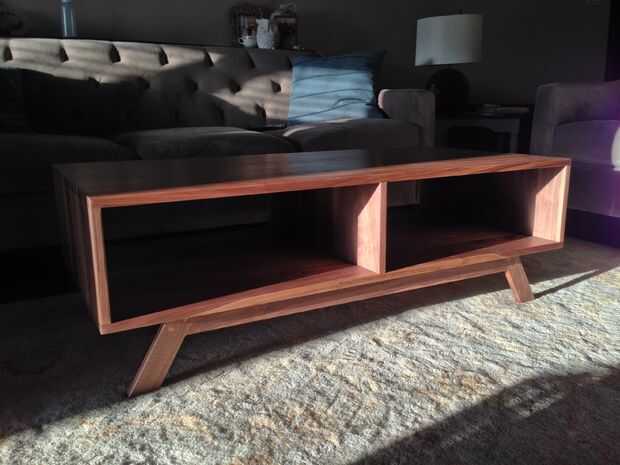 Mesa de centro de estilo moderno de mediados de siglo hecha con Plyboo (contrachapado de bambú)