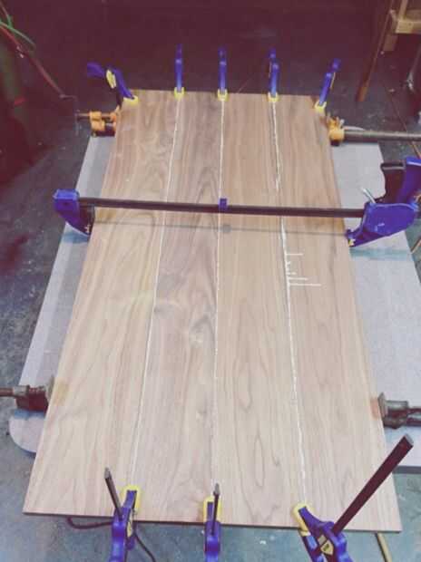 Me encontré con algunos Plyboo, un nuevo material hecho de bambú laminado. Su una superficie muy atractiva, con veta geométrica. El laminado es denso, estable y bastante caro, por lo que no quería desaprovecharla.Tenía lo suficiente para una mesa de
