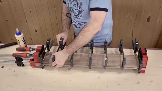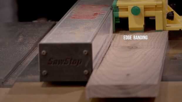Para cubrir los bordes expuestos de madera contrachapada, corte unas tiras de 1/8" nogal y pegarlos en todas las puertas y los bordes del cajón.