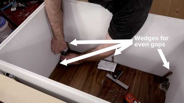 para este proyecto, teníamos casos de libro incorporado para una pared larga. Usando pretaladrados melamina laminada de tableros y gabinetes preconstruidos de la tienda local, hemos sido capaces de construir con un mínimo de herramientas y obtener un