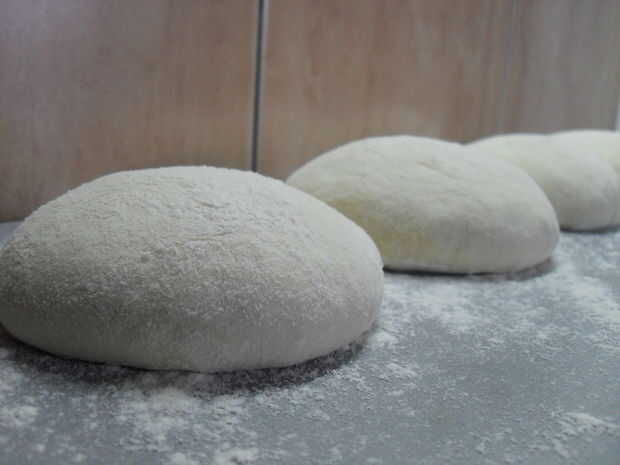 Vierta la leche en el bol, añadir la levadura, el azúcar y una taza de harina y revolver bien. Dejar reposar 10 minutos para conseguir burbujas. Poco a poco añadir más harina, sal y el agua mientras se amasa. A veces tienes que poner más harina, pero a veces es demasiado, realmente depende de tipo de harina. Vierta el aceite y amasar durante unos minutos más.