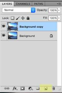 Antes de editar les suele gustar hacer una copia de la capa original en caso de que quiero volver al original. Puedes hacerlo arrastrando su capa de "Fondo" a la "nueva capa" icono situado en la parte inferior de la ficha de la capa. Una vez copiado debería ver dos capas idénticas aparece en la ficha de capas