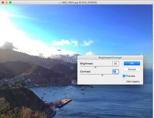 -Ahora vamos a añadir un brillo a su selección. Vaya a "Imagen" > "Ajustes" > "Brightness/Contrast"
