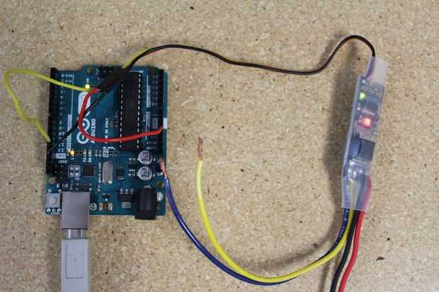 Si la tensión es entre 6.5V - 20V, la avispa obtiene la energía de esa fuente. Si la tensión es superior a 20V, el conector BEC (ver imagen abajo) debe cortarse, y debe tener una fuente externa de 5V para alimentar la avispa. Si se conectan los cables de señal (rojo amarillo negro), la avispa puede dibujar energía a través de las líneas rojas y negras. El cable amarillo es el cable de señal.