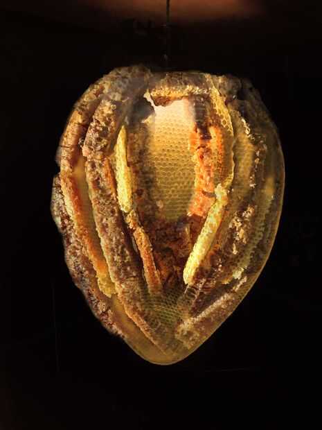 Para esta serie de esculturas de colaboración, que quería hacer un marco orgánico que mis abejas podrían construir peine. Ya que el peine es pesado lleno de miel y muy frágil cuando se toman de la colmena, decidieron que necesitaba construir una estructura lo suficientemente fuerte como para soportar el peso y todavía lo suficientemente transparente como para hacer visible la naturaleza frágil del peine cuando la pieza terminó.