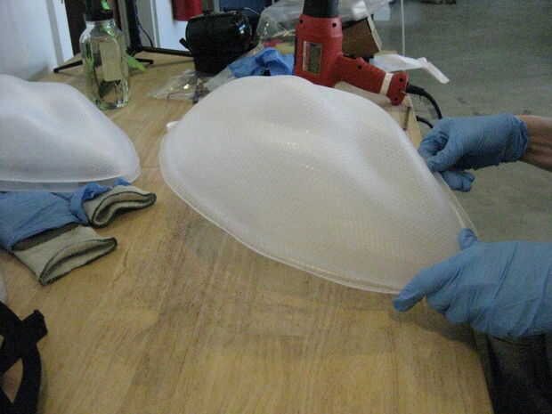 Uno de los problemas con el uso de calor a las dos mitades de la forma que realmente la formación del vacío se estira el acrílico, y cuando su caliente otra vez tiende a disminuir. Después de un rato y practicar era capaz de utilizar la reducción a mi favor y encontré que es mejor dejar material extra en los bordes y pegar. Una vez que se pegan las dos mitades, golpearon con la herramienta dremel y la tierra que el labio se traslapa apagado.