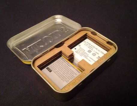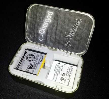 Quiero ser capaz de decir que las baterías están cargadas, y que están agotadas. Llevo 3 baterías de la cámara cuando viajo, así que en cualquier momento, las dos pilas están sueltas, y uno siempre está en la cámara. El último día antes de un viaje, siempre tiré juntos un Altoid tin titular laboriosamente cortados a mano de cartón o espuma. Mi solución original trabajado, pero los botes no se veían muy frescos. Vamos a arreglar eso...
