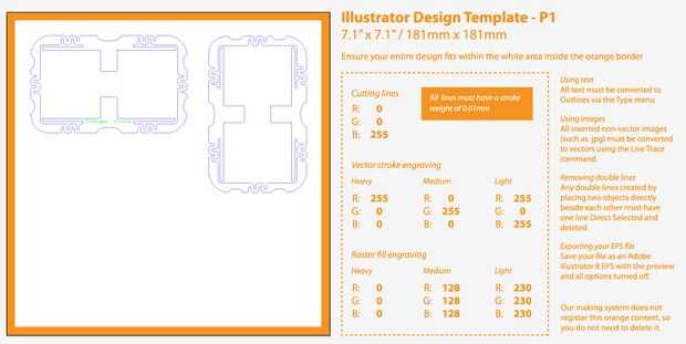 No te preocupes de tener que memorizar nada, las plantillas descargables proporcionadas por Ponoko siempre contienen todo en instrucciones detalladas, muestran apagado al lado de orange, que ignora el cortador del laser.