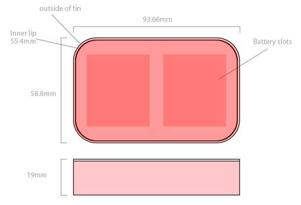 Nota: En la última página de este Instructable hablo sobre las tolerancias para los objetos. No agrego ningún meneo habitacion para mis baterías, y se ajustan un poco demasiado cómodamente. Recomiendo agregar un extra 1mm a la anchura y la altura de lo que mide, por lo que los agujeros son un pelo más grande que los objetos.