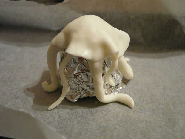 Después de la cocción, sacar del horno y enfriar sobre la forma. Arcilla del polímero es poco flexible con mucho cuidado y suavemente Retire la lámina. También puede aplastar y comprimir la hoja para hacer más pequeño para el retiro más fácil.