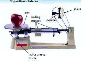 El pan es la bandeja de plata en la que colocarás a tu probeta. Hay tres masas deslizantes en un equilibrio de viga triple. La más grande masa representa 100 gramos la media masa representa 10 gramos y el más pequeño representa 1 gramo. Estas masas son deslizarse a lo largo de vigas diferentes para tratar de determinar la masa del espécimen en la bandeja. El siguiente es el puntero, la flecha apunte hacia la escala y ayuda a determinar cuando usted tiene la masa correcta. La escala es lo que usa el puntero para determinar cuando las masas son iguales. Una vez que el puntero se dirige al 0 en la escala de sus masas son iguales.