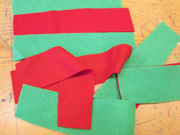 Cortar 12 tiras de rojo y verde fieltro 3 X 8 pulg.