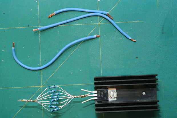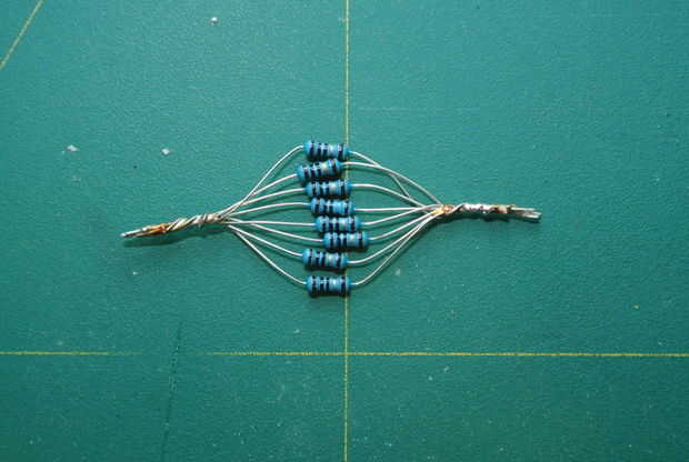Estoy usando 0. 8 25W resistores estándar de 10 ohmios en paralelo me da una resistencia de Ohm 1,25 de 2W.