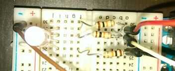 Para mostrar la medición en el Arduino se puede utilizar un LED RGB para mostrar en qué intervalo se encuentra la medición. En este ejemplo se utilizan 3 intervalos. Estos pueden ser calibrados usando la medida 4. Primera medida con agua desmineralizada. Luego se mide 3 veces con concentraciones conocidas. Se trata de su calibración.