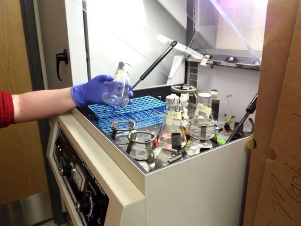 La bacteria utilizada en este ejemplo es un cultivo de Anabaena variabilis crece en 50 mL de los medios recomendados (BG-11o). Diferentes especies de bacterias crecen diferentemente en diversos medios y bajo otras condiciones, pero las condiciones de crecimiento correcto para cualquier bacteria dada es encontrar más allá del alcance de este instructable. En nuestra experiencia con esta bacteria particular, 50 mL es suficiente medio de tomar una muestra de 1 mL no afectará dramáticamente la capacidad de las bacterias para seguir creciendo ni overconcentrate las bacterias dentro de los medios de comunicación, que también frenaría la velocidad de crecimiento de las bacterias.