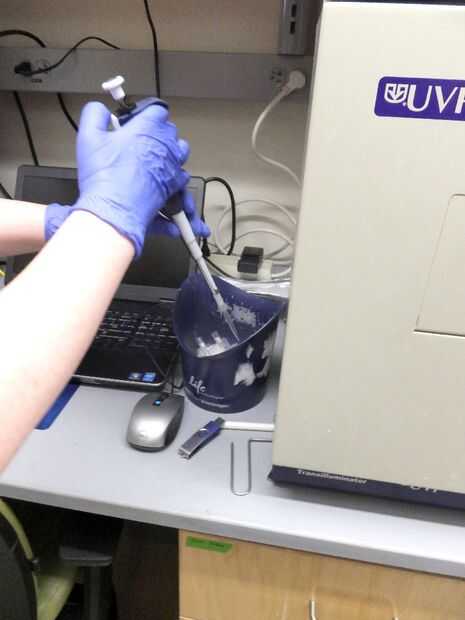 Tomar la pipeta de 1mL, coloque la punta de una pipeta de 1 mL y elaborar 1 mL de la muestra. Dispensar la muestra en un tubo de microcentrífuga. Deseche la punta de la pipeta y cerrar el tubo de microcentrífuga. Si usted está midiendo más de una muestra, siempre desechar las puntas y cerrar tubos entre cada muestra. Es imprescindible para una lectura precisa que usted no Cruz-contaminar. Véase la figura 1.