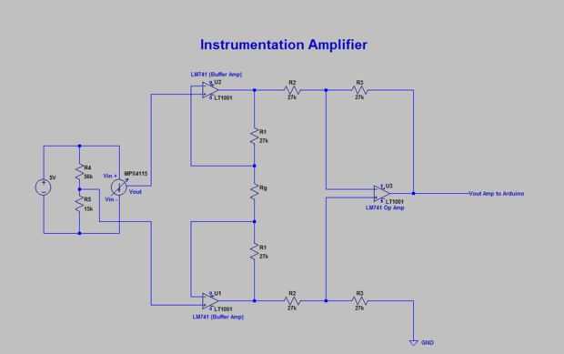 También retire este offset creamos un circuito divisor de tensión para proporcionar (3.935v) salida que enviamos al amplificador de instrumentación.