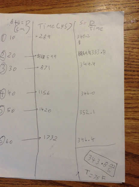 Después de anotar el tiempo total para diferentes distancias, ahora podemos calcular la velocidad del sonido: