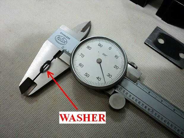 Eliminar el plomo, mide su nuevo grosor y miró a través de mi cajón de arandelas de acero para un par de espesor adecuado para darme la cantidad justa de deslizamiento. Por suerte, había dos que eran perfectos para el trabajo y sin moler o apilar para arriba se necesitaba, una muy casual encontrar. Simplemente coloca en la parte inferior de la mandíbula y atornillada en la tira de cuidador, trabajo hecho.