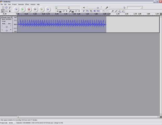 Poner el micrófono cerca del registro de barril por lo menos un segundo de fuego continuo. Debería verse como la imagen de abajo. Cada pico grande representa el disparo de pistola. picos pequeños en el medio son las partes de armas móviles. sólo cuentan los grandes picos.