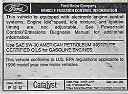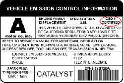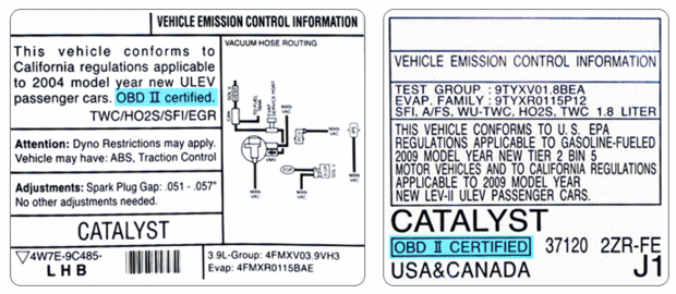 La etiqueta debe contener información sobre el cumplimiento de los estándares y puede contener abreviaturas OBD II, EOBD y JOBD. Pueden verse diferente, estas son algunas de las opciones posibles.