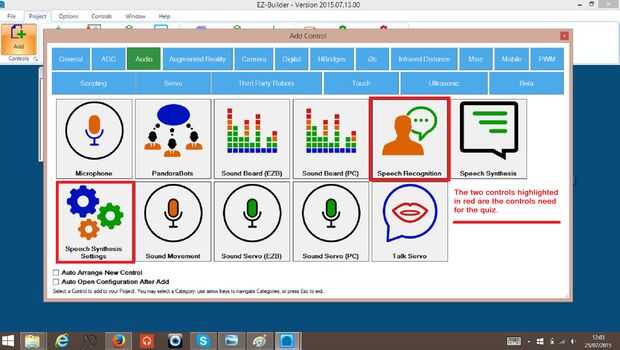 Ahora, si tu voz de síntesis de voz está funcionando correctamente, el equipo se entrena el sistema de "Reconocimiento de voz de Windows" y el reconocimiento de voz y controles de síntesis de discurso en el software EZ-Builder ahora instalan, saltar directamente al paso 5 donde empezamos a escribir algo de código.