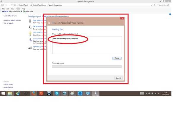 - Haga clic en "siguiente " y luego leer la frase que aparece en la pantalla que será... "Ahora estoy hablando en mi equipo".