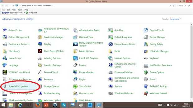 - Abierto sus computadoras "Panel de Control", luego haga clic en "Reconocimiento de voz".
