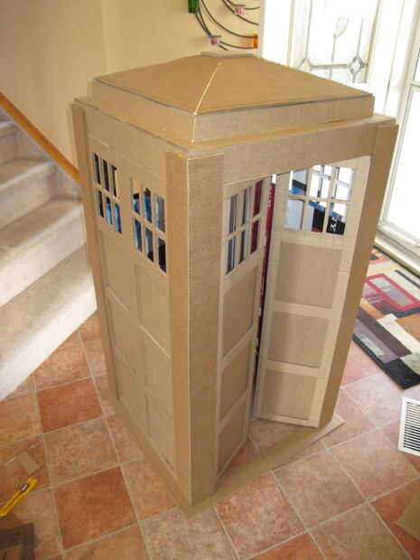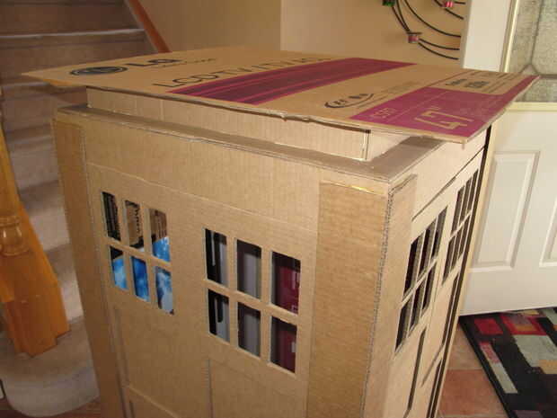 El último paso de la azotea fue cortar otro 10 cm por pieza de 10 cm de cartulina y pégalo al techo. La luz de la Tardis se sienta un poco por lo que me pareció una pieza todo lo que necesitaba para que se vea bien.