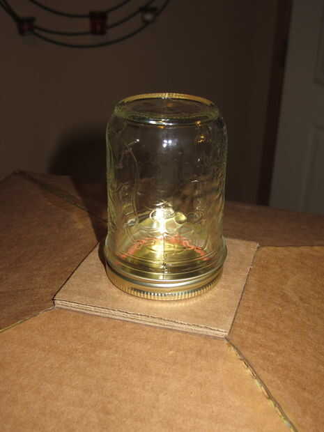 Para la luz en el techo he usado un tarro de masón. Caliente pegamento asesinado a la tapa de la azotea y luego acaba bien el tarro. Terminé con un mag luz la tapa como la luz, así que antes de un pegado la tapa hacia abajo un perforado un agujero en la tapa y el cartón para ajustar la luz a través.
