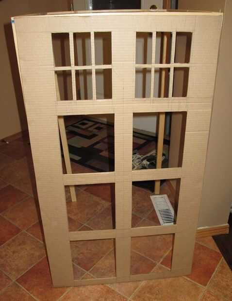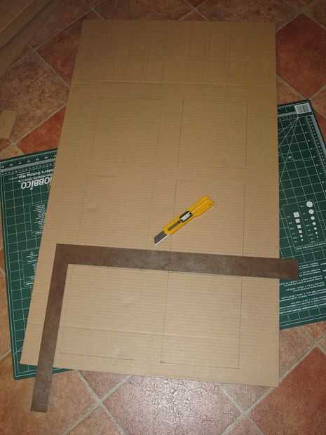 Usé el primer panel que corte como una plantilla recortar tres lados más. En el cuadro del diagrama sólo tiene las dimensiones de un lado de la hoja de cartón, pero ambos medio de son las mismas dimensiones. No corte la hoja que ha seleccionado para ser la puerta de entrada en medio. Es necesario mantener esto como una hoja sólida por el momento.