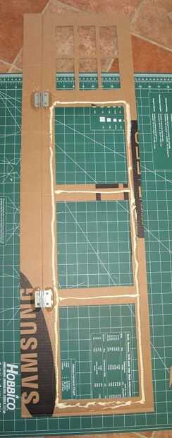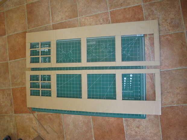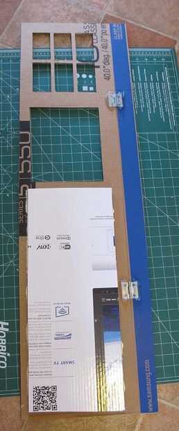 Una vez secas las bisagras cubre el panel 18 cm por aberturas de 21 cm. Si cubres antes de este paso sólo hará difícil cortar las puertas por la mitad y cortar los lados.