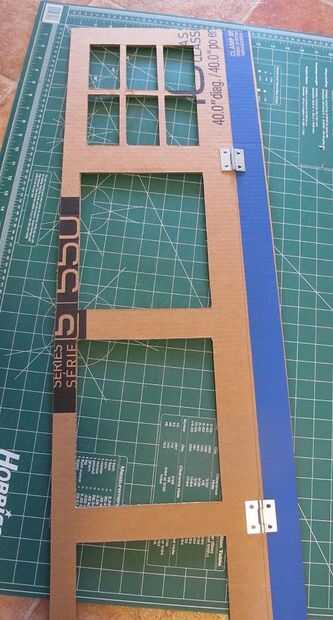 A continuación cortar la tira afuera de cada puerta. Fui a mi tienda local de hardware y compró un conjunto barato de bisagras para un par de dólares al sistema. Usted necesitará vuelva a colocar las tiras de exterior con las bisagras. Utilicé una pistola de pegamento caliente para fijar las bisagras con. Asegúrese de que usted alinear las dos piezas a volver perfectamente o una vez que instale las puertas a la Tardis no abra y cierre correctamente.