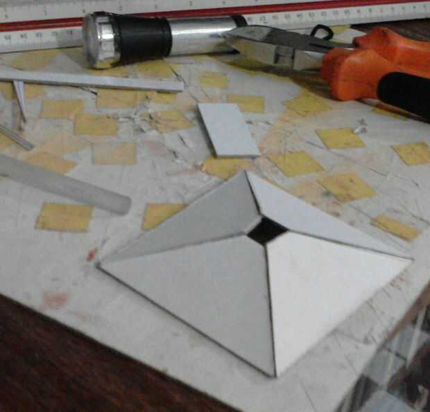 el techo mide lo mismo la base asi que solo cortas un cuadrado igual de la base, la parte de arriba es un poco mas complicada. corta un cuadrado y marca la mitad de esquina una aesquina formando una "X" a la derecha de cada línea marca 3 m m y de ahi marcas una linea al punto central ahora corta todas las lineas y tendras lo aparace en la segunda foto te saldran 4 rectangulos, un cada uno de ellos cortales la punta superior como un medio centimetro ahora pega como el la tercer foto ,