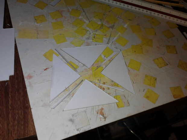 ahora usaremos esas tiras de medio centimetro y las uniremos a esta pieza para elevarla medio centimetro y despues la pegamos al techo