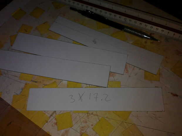 haremos lo seran los postes adornan las esquinas y sostienen el techo, es bastante facil si marcas todos en la cartulina juntos, puedes cortar una tira larga y cortar solo la distancia de cada uno, at lugar de; medir, dibujar, y cortar uno por uno