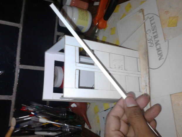 tomamos los rectangulos les dije guardaran en el paso 4 y los pegamos en la parte superior de los postes por dentro, en este momento esta lejos de ser una tardis pero ya veran, de tiras de 5 de despues cortamos un monton. ¿milímetros por las usaremos un monton, como? pues en el paso cuatro marcamos unas lineas en los rectangulos mas gandes y sobre esas lineas forman cuadritos Irán estas tiritas lo mas dificil de estoes cortar ortar y cortar las tiritas a la medida físico-matemáticas y pegar cada una esperar a Blizzard para continuar